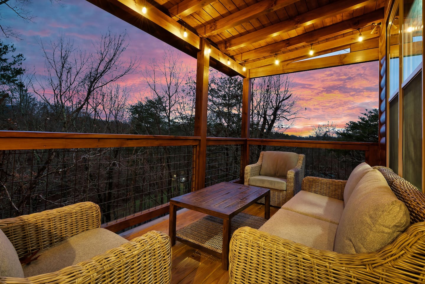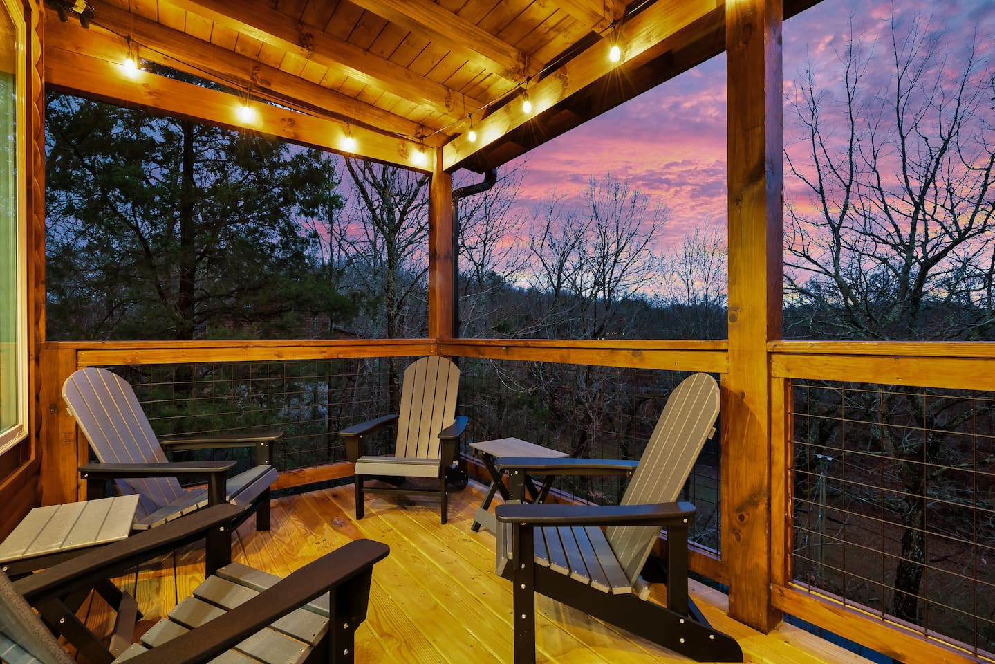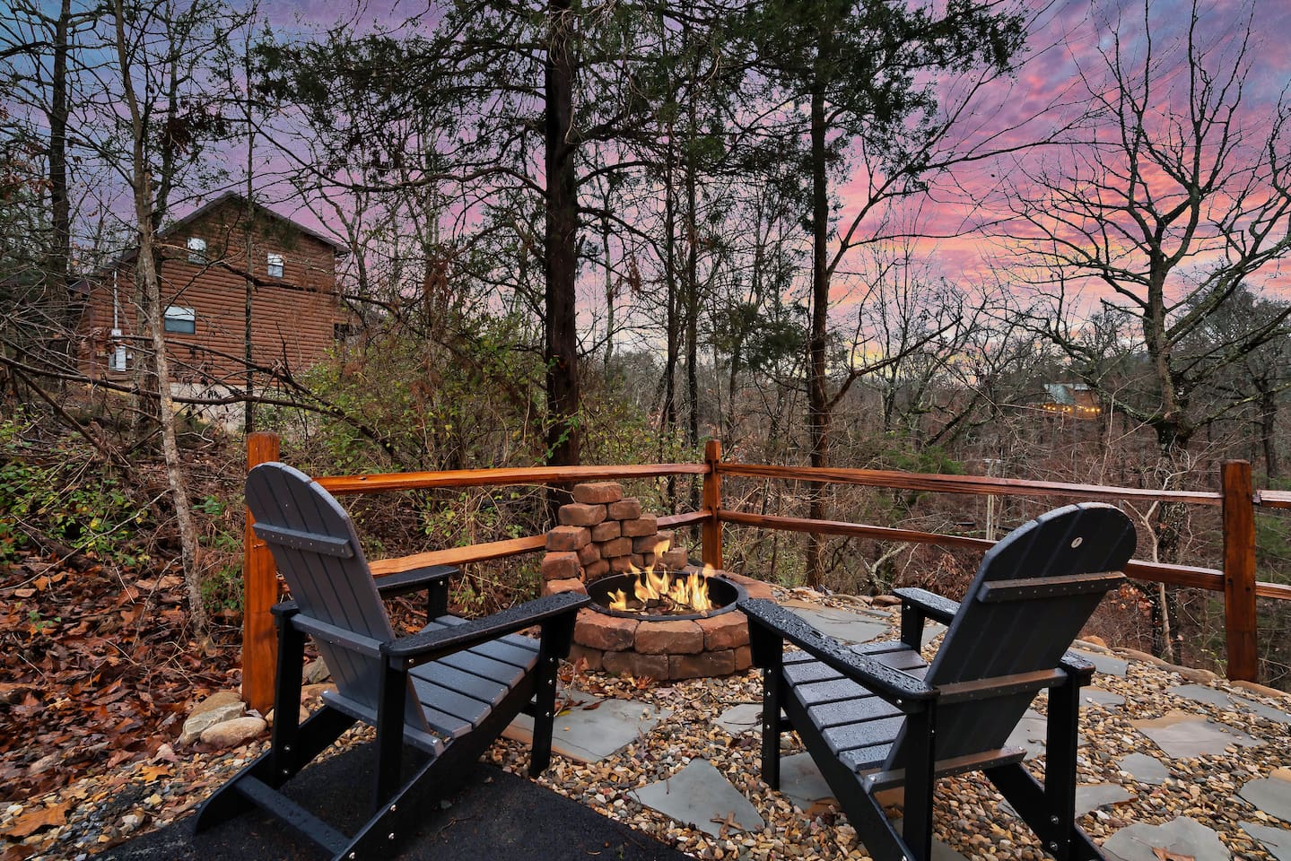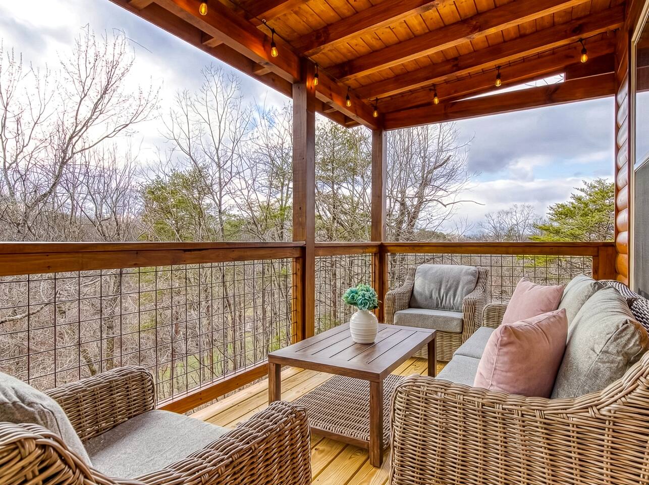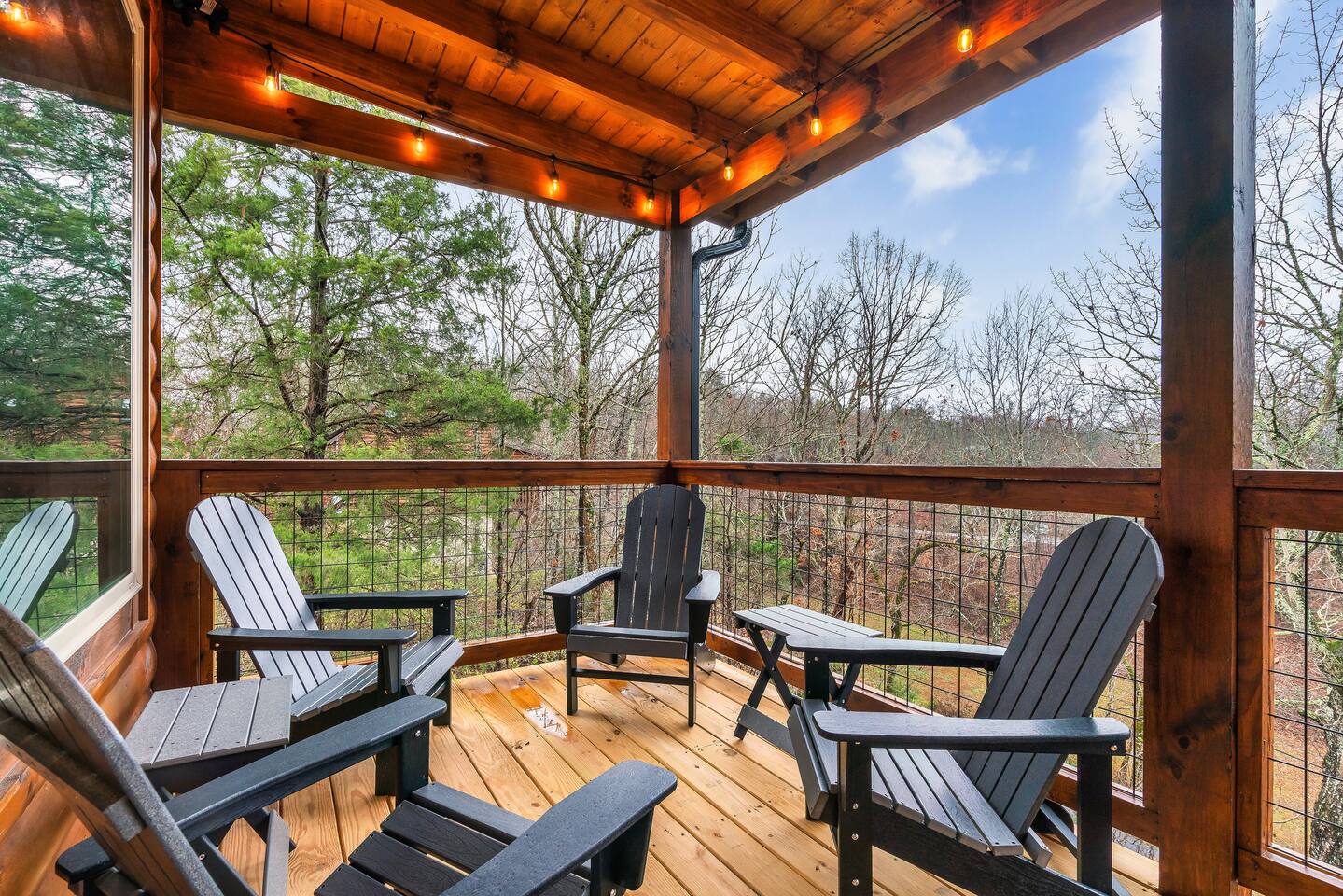 Cozy Bear Escape is the perfect mountain retreat for couples—whether traveling alone or with kids—as well as for two families looking to unwind and create unforgettable Smoky Mountain memories together. This upscale-yet-cozy 2-bedroom cabin sleeps up to 10 and is thoughtfully designed for couples, families, and group getaways alike. Conveniently located just 4 miles from Pigeon Forge and 11 miles from Gatlinburg, you’ll be close to top attractions while still enjoying peace, privacy, and wooded surroundings. The open-concept kitchen and living area provide a welcoming space for shared meals, games, and late-night conversations. At the end of the day, adults can retreat to comfortable private bedrooms, while kids enjoy their own upstairs living space complete with bunk beds, a game console, and an air hockey table—perfect for year-round fun, rain or shine. After a full day of hiking, shows, or theme parks, unwind on the deck with dinner, soak in the hot tub, gather around the fire pit with music, or enjoy a cozy movie night on the big screen. Every corner of Cozy Bear Escape is designed to strike the perfect balance between togetherness and privacy, offering a relaxing escape surrounded by Smoky Mountain charm. ________________________________________ Space Layout • 1,440 sq. ft. cabin with 2 bedrooms and 2 full bathrooms • Bedroom 1: King bed with an ensuite full bathroom, accessible from both the bedroom and common area • Bedroom 2: King bed with an ensuite full bathroom, accessible from both the bedroom and common area • Upstairs living area: Queen-over-Queen bunk beds • Additional sleeping: Queen sleeper sofa in the upstairs living area ________________________________________ Features & Amenities • Hot tub for relaxing after a day of adventure • Large Roku TV for movie nights or game day • Roku TVs in both bedrooms • Wood-burning fire pit out front (firewood not provided) • Large outdoor dining table to enjoy meals surrounded by nature • Drip coffee maker and Keurig (BYO coffee & K-cups) • Fully stocked kitchen cookware (BYO food & condiments)