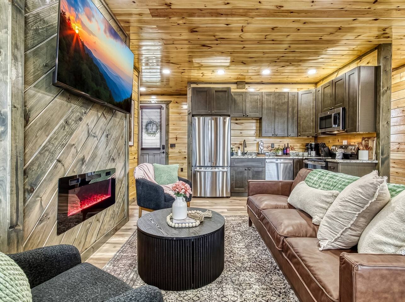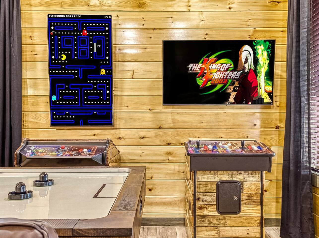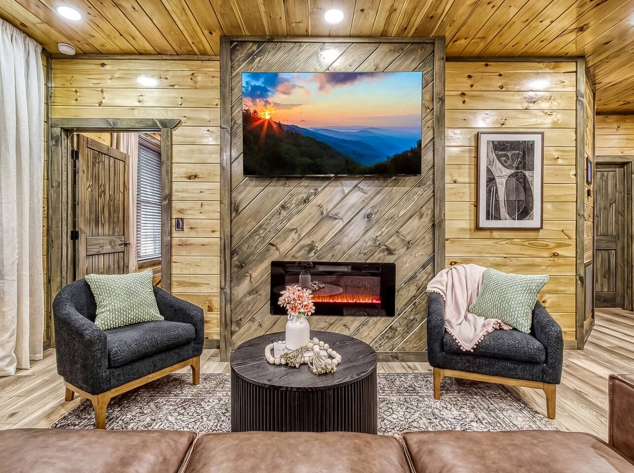 Escape to our 2-king suite, queen bunks Smoky Mountain cabin just 4 mi from Pigeon Forge and 11 mi from Gatlinburg. After days of adventure, soak in the private hot tub or gather by the wood-burning fire pit under the stars. Inside, enjoy an arcade with air-hockey & retro games, a fully stocked kitchen with Keurig & drip coffee, large Roku TVs, plus an EV charger and parking for 3 cars. Ready for mountain memories? Book your stay today!