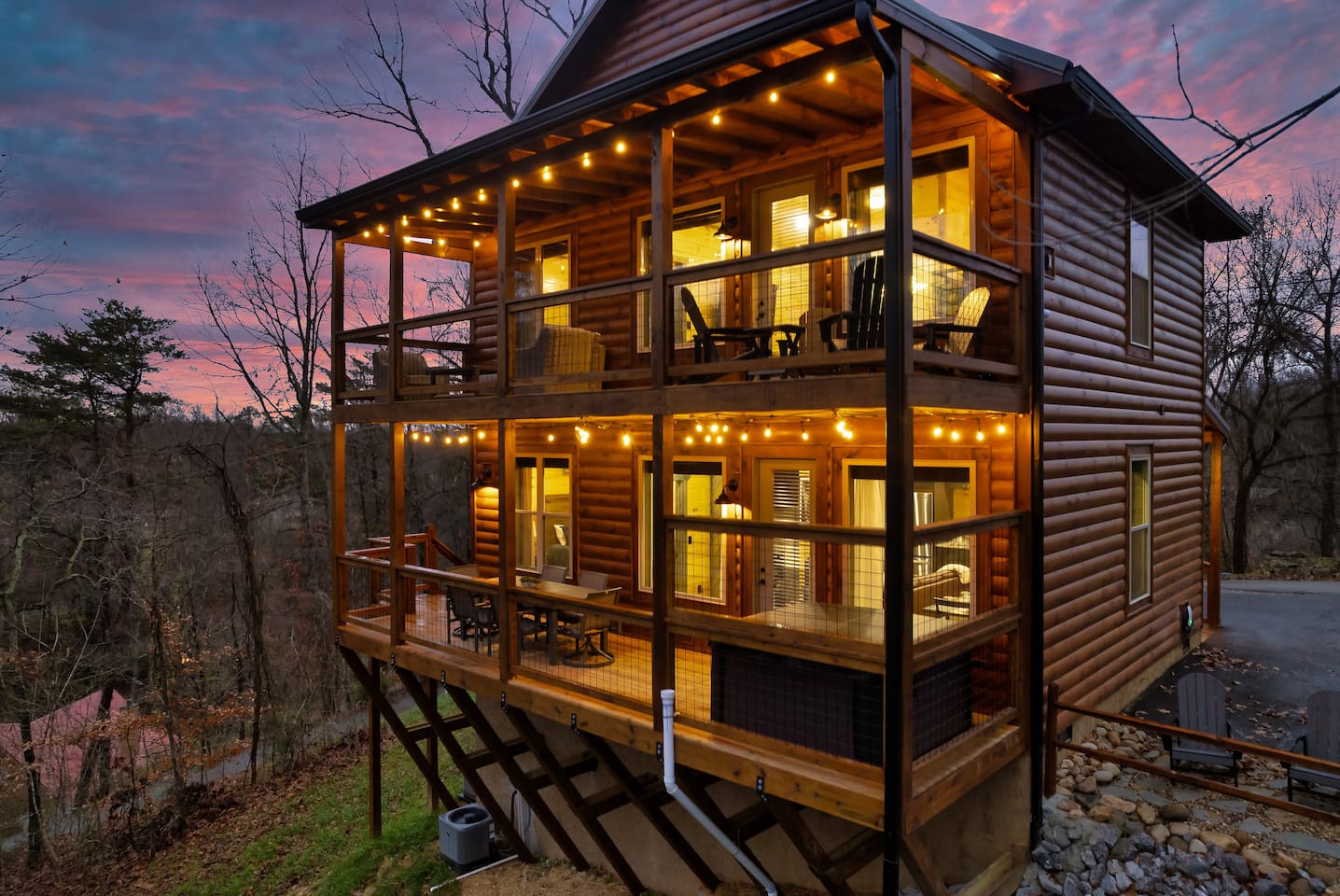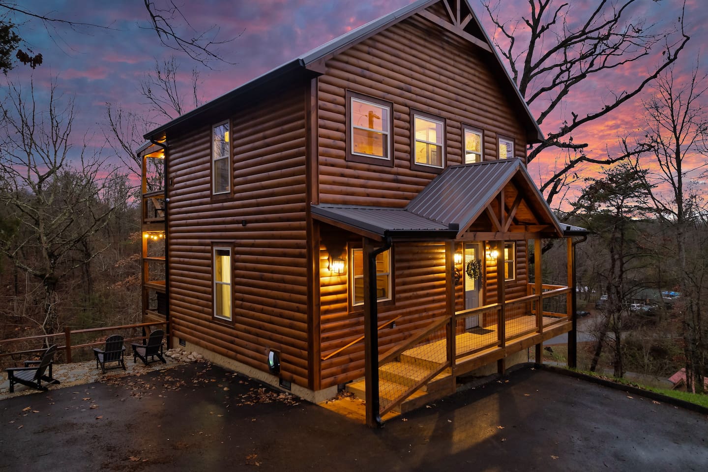 You will be provided a door code specific to you before check-in. No need to meet anyone for keys. You get the whole house and back decks to yourselves. Main entrance is the front door of the cabin with key pad access. The cabin is on a paved mountain road. While 4 wheel drive is not needed most of the time, we do 100% suggest it if there is snow.